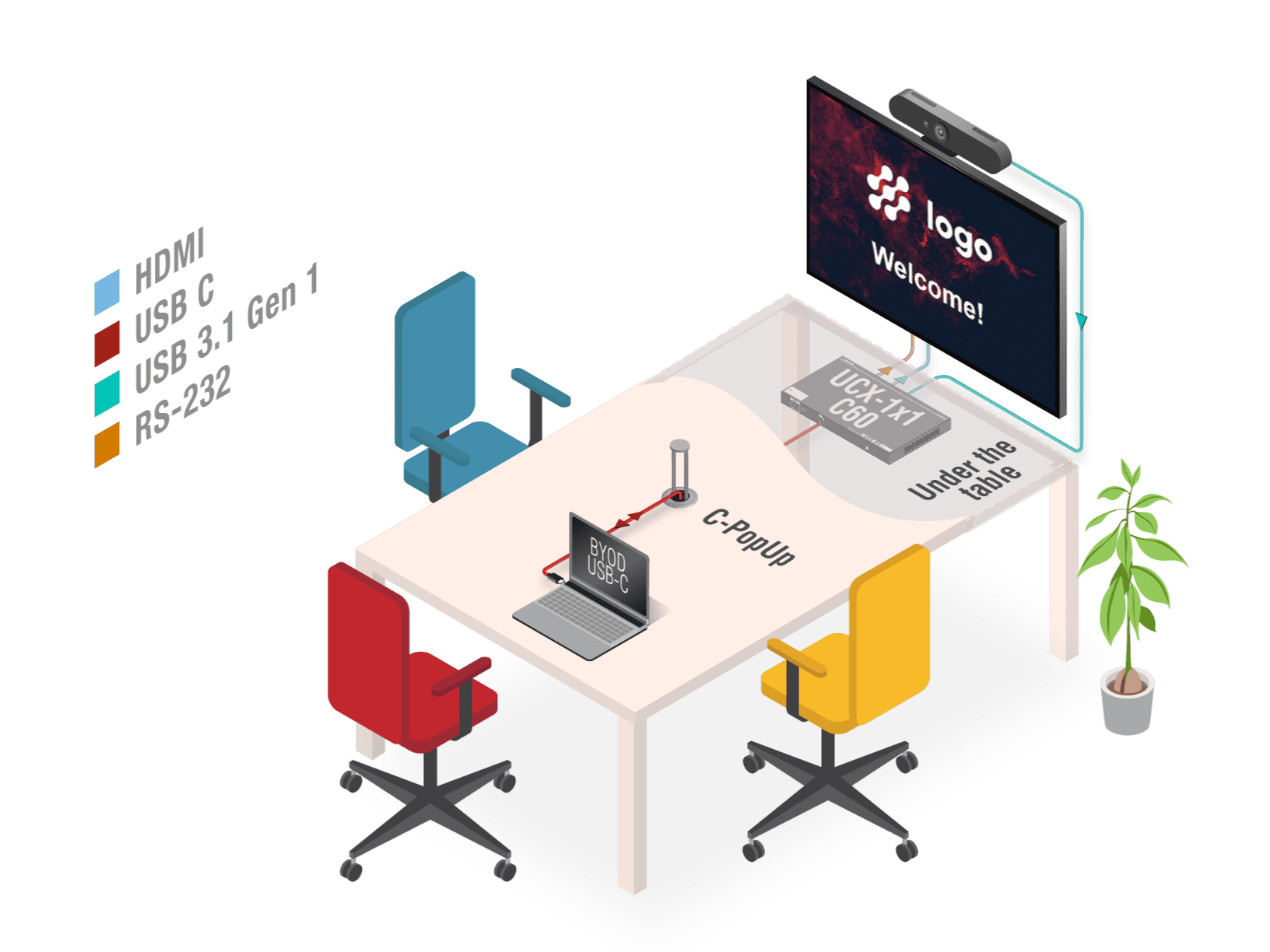 Streamlined device connectivity: the ultimate plug-and-play solution for huddle rooms. It powers your tools while delivering a hassle-free, intuitive meeting experience.