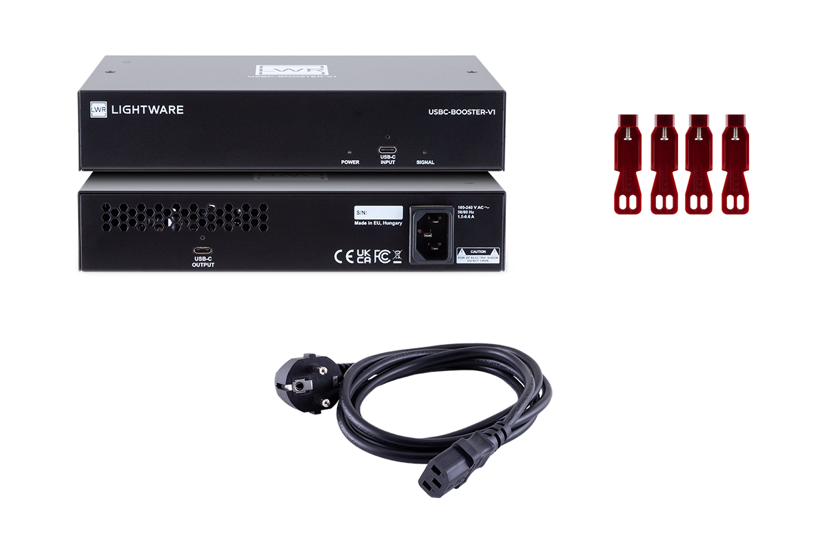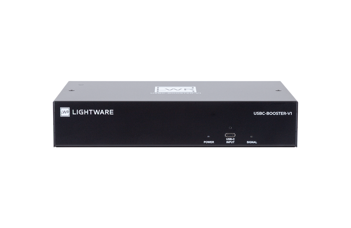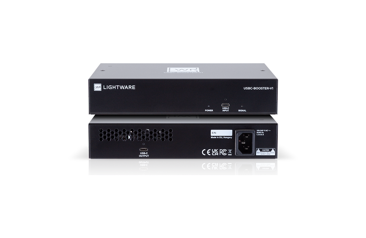Lightware’s USBC-BOOSTER-V1 is a compact, plug-and-play device which extends a full featured USB-C connection up to 12 meters, while providing stable power charging up to 100W and full support for USB 2.0/3.2 data and DisplayPort Alt Mode.