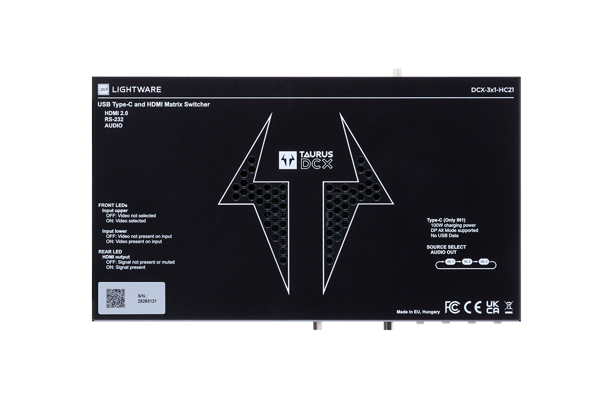 The DCX-3x1-HC21 video switcher enhances and extends the possibilities of a meeting room and allows meeting participants to easily utilize the room HDMI display.