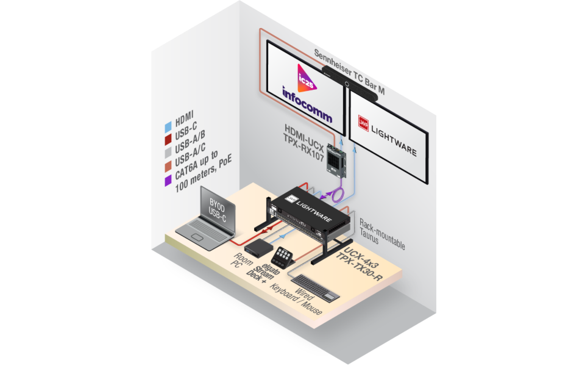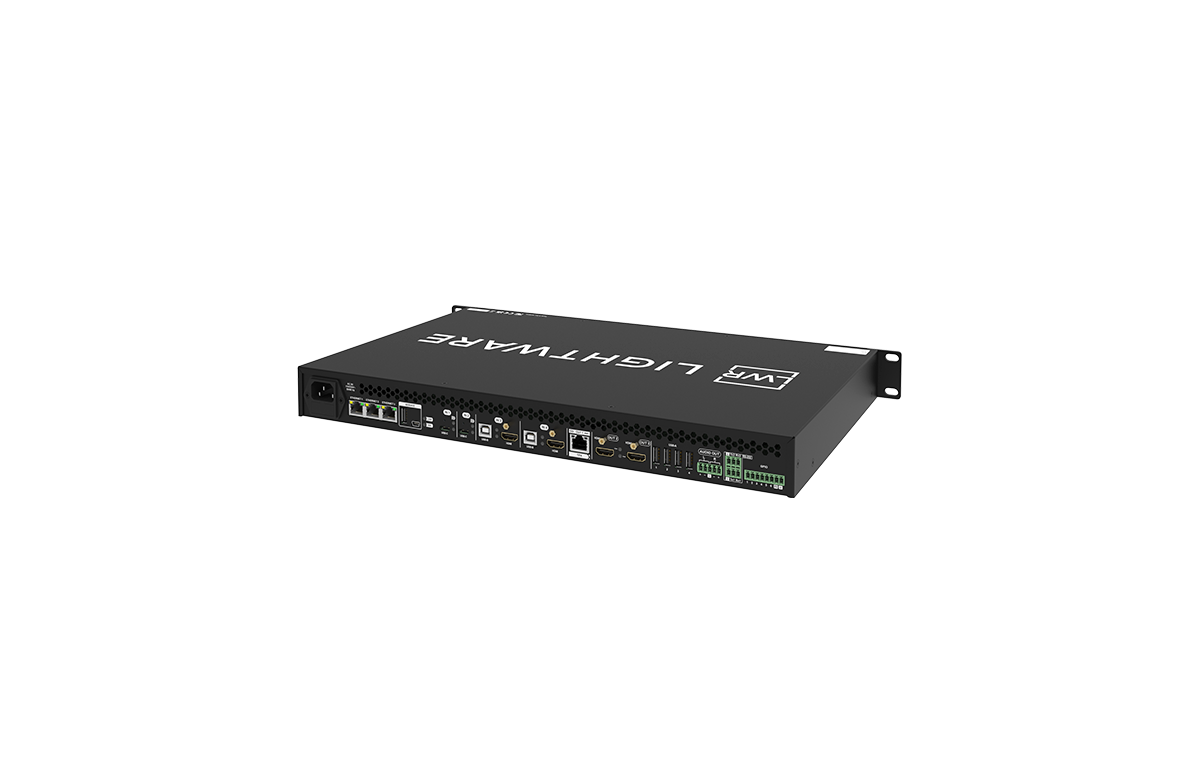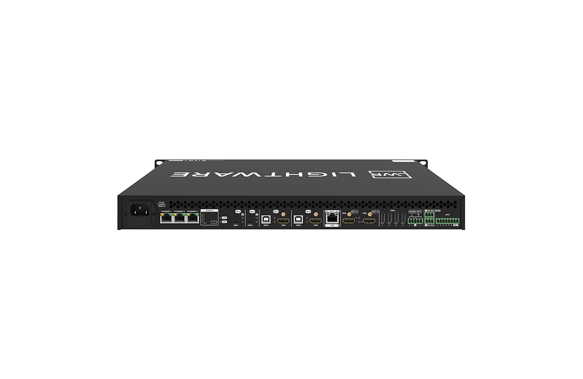 Rack-mountable universal transmitter switcher is part of the AV over IP ecosystem with SDVoE technology that provides the same functionality as the UCX product range in terms of signal management and connectivity. All the cabling on the rear and internal power supply allow easy installation in racks, lecterns or credenzas. At the same time, the bundle overcomes the limitations imposed by the USB and HDMI cables and allows for the extension of video, audio, and control signals in one direction and the USB 2.0 data in the other up to a transmission distance of 100m.