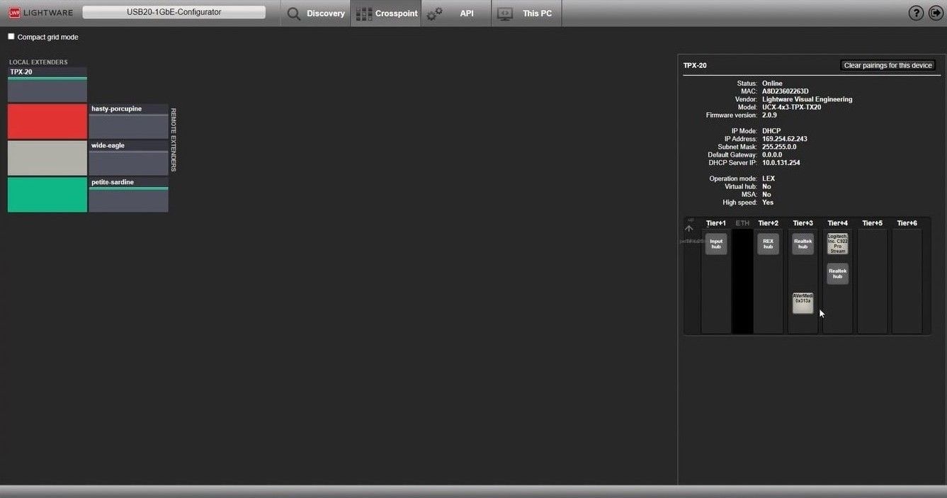It provides AV professionals with a clear, real-time view of the entire USB topology, highlights tier limits and connection issues, supports intuitive device pairing, and enables flexible routing between hosts and peripherals. This makes it easy to deploy, configure and troubleshoot even the most complex USB systems in boardrooms, auditoriums and control rooms.