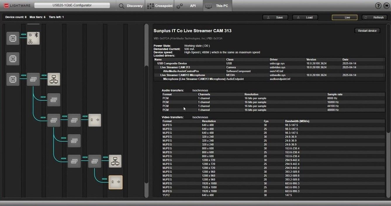 This tier-aware insight lets integrators validate system stability, eliminate hidden enumeration issues and ensure consistent USB performance in even the most complex AV environments.